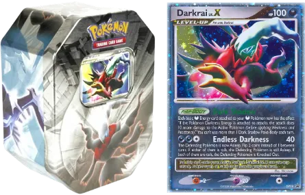 This collector's tin features the Darkrai LV.X DP19 promo, which has a low PSA 10 population of just 20. It typically contains four Diamond & Pearl series booster packs: two Secret Wonders, one Great Encounters, and one Mysterious Treasures.