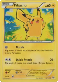This Pikachu promo was distributed during the 2014 theatrical release of The LEGO Movie. The card is a cosmos holofoil reprint of the Pikachu originally found in the English XY base set. These were primarily distributed in sampling packs at cinemas.
