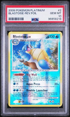 Card SalesPSA 10 Reverse Holo Platinum Blastoise Sells for $13.75kPSA 10 Reverse Holo Platinum Blastoise Sells for $13.75k Listing Singles Type - Condition: Graded - PSA 10 Set Name - Year: Platinum Base Set - 2009 Sales History: Because this is a pop 1 card there is no history to compare to but a similar PSA 10 (pop 8) reverse holo Vulpix sold for $13k in Mar. 2026.More from this weekTCG News"Abyss Eye" Set Featuring Mega Darkrai ex Revealed for MayTCG NewsMega Festa 2026 Magikarp Promo Revealed for Seoul Stamp RallyTCG NewsPSA Parent Company Faces Antitrust Lawsuit Over SGC & Beckett AcquisitionsThe Pokémon card market moves fast. Stay caught up every Monday.Subscribe