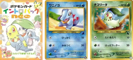 This introductory gift box was released in Japan to help new players transition into the Neo series mechanics. It contains two fixed 40-card half-decks featuring the Johto starters: the Chikorita Half Deck (featuring Chikorita #1) and the Totodile Half Deck (featuring Totodile #16).
