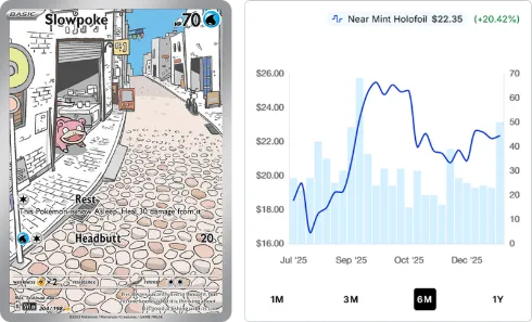 Over the past ~6 months, the near mint price has held steady around $24. Slowpoke maintains consistent demand as a fan-favorite.