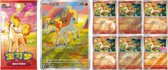 A major highlight of the set is a brand-new, Simplified Chinese exclusive Ponyta illustration card, featuring artwork by Minaminami Take. (Source: Pokébeach)